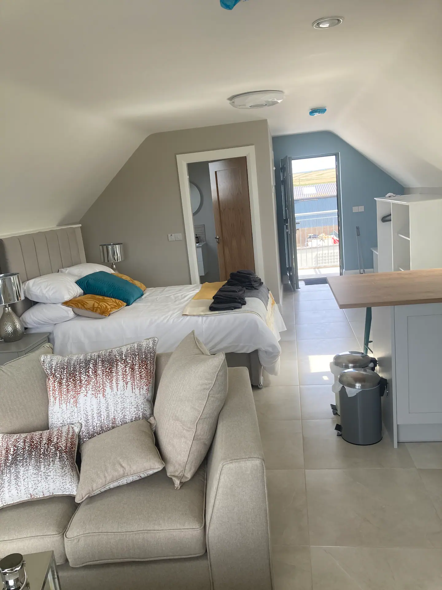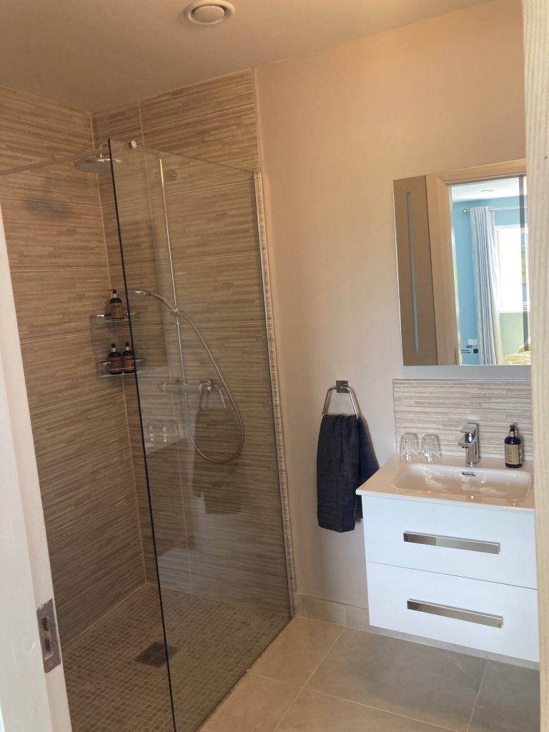 The first floor studio sleeps 2 adults with a double bed, and a living, dining and kitchen area with all the mod-cons. There’s a separate modern bathroom.