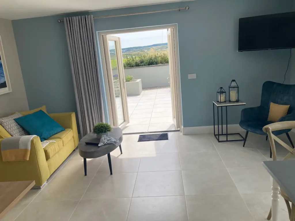 The apartment block is tucked down a quiet road, with rolling countryside from your doorstep. You’re still within easy reach of the sights, as Doolin’s pubs, cafés and shops are just 7 minutes’ stroll away. And it’s only a short drive to the Cliffs of Moher and the ferry for trips to the Aran Islands.