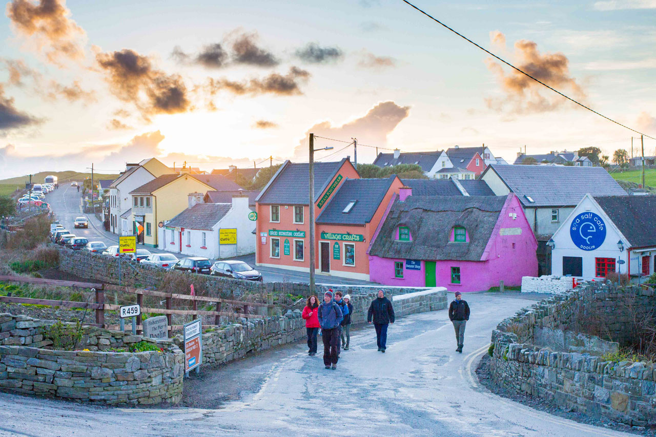 Doolin is small in size, but big in charm and sights. It’s a popular stop-off point on Ireland’s Wild Atlantic Way, with people setting off to explore the Cliffs of Moher and the beautiful Aran Islands.